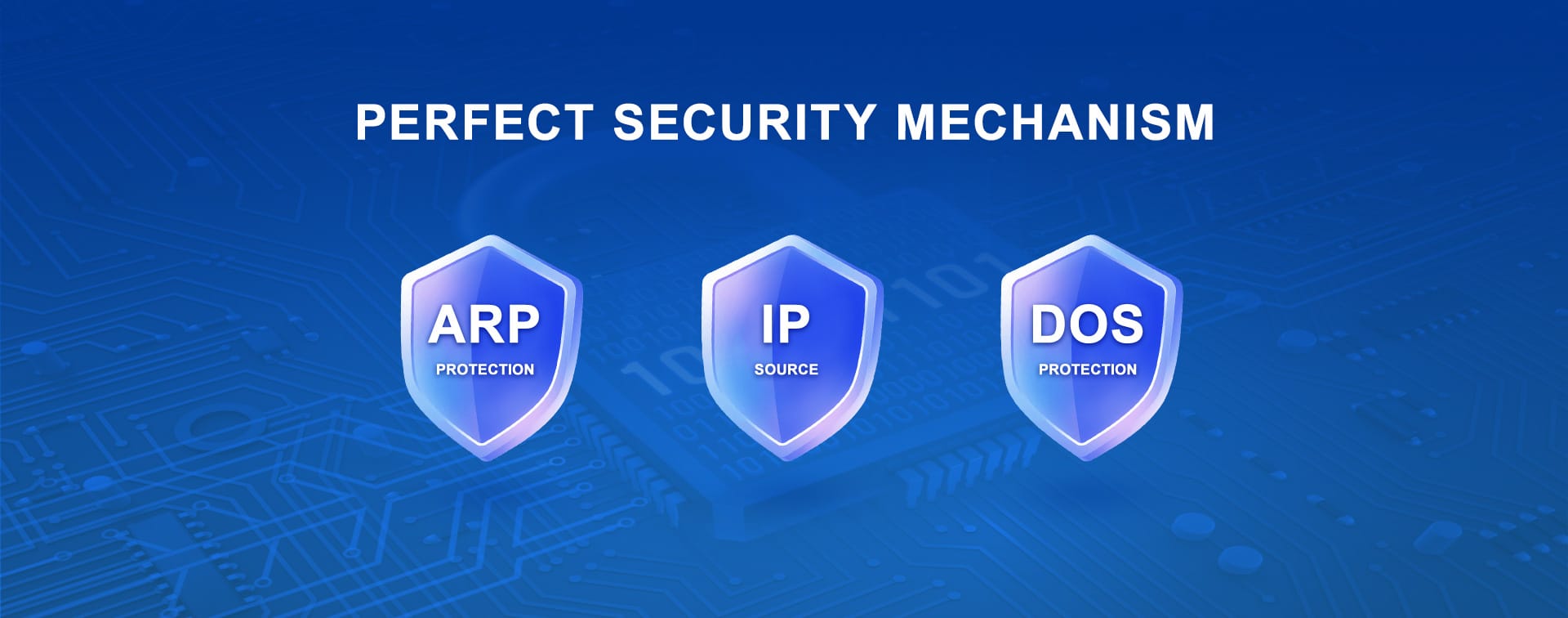 Support ARP protection, IP source protection, DOS protection SupportDHCP Snooping、DHCP Attack protection
