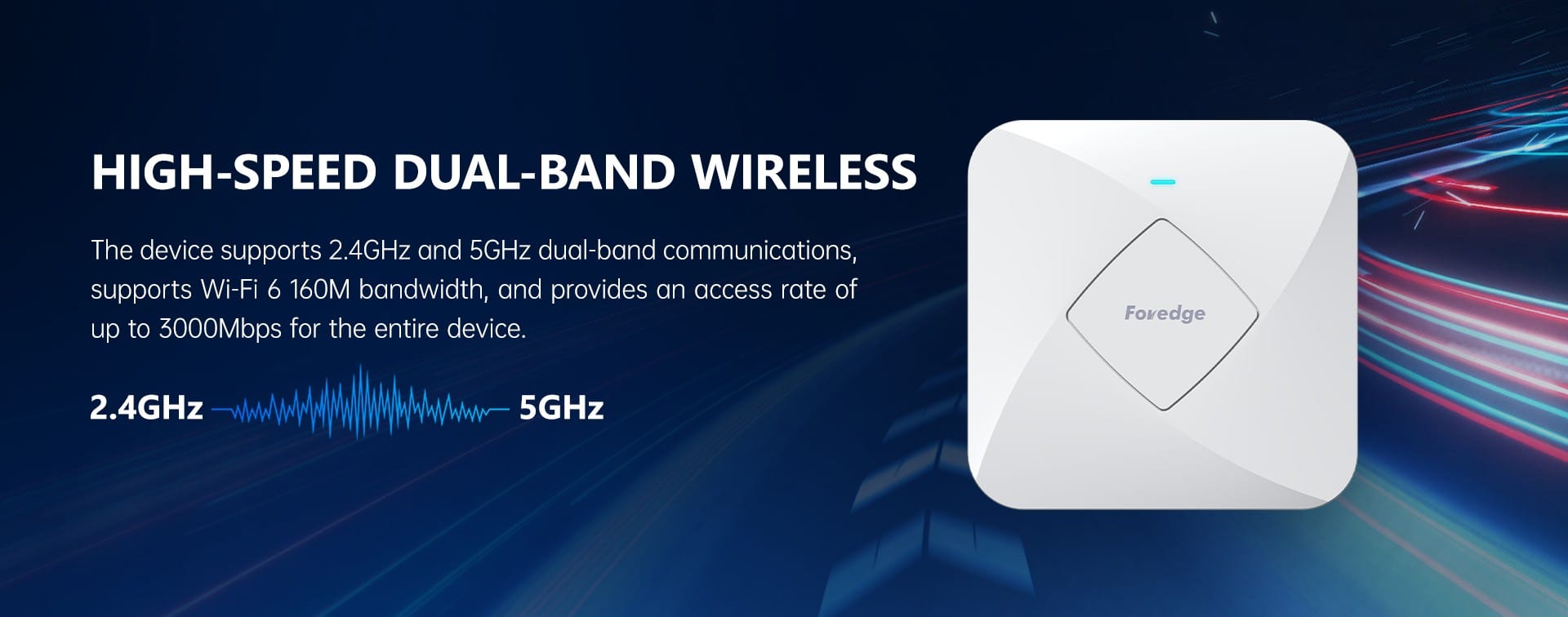 Maximum speed2.4G provides a maximum access rate of 574Mbps, 5G provides a maximum access rate of 2402Mbps